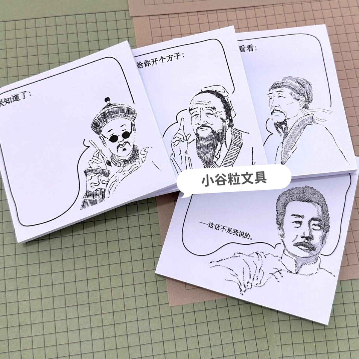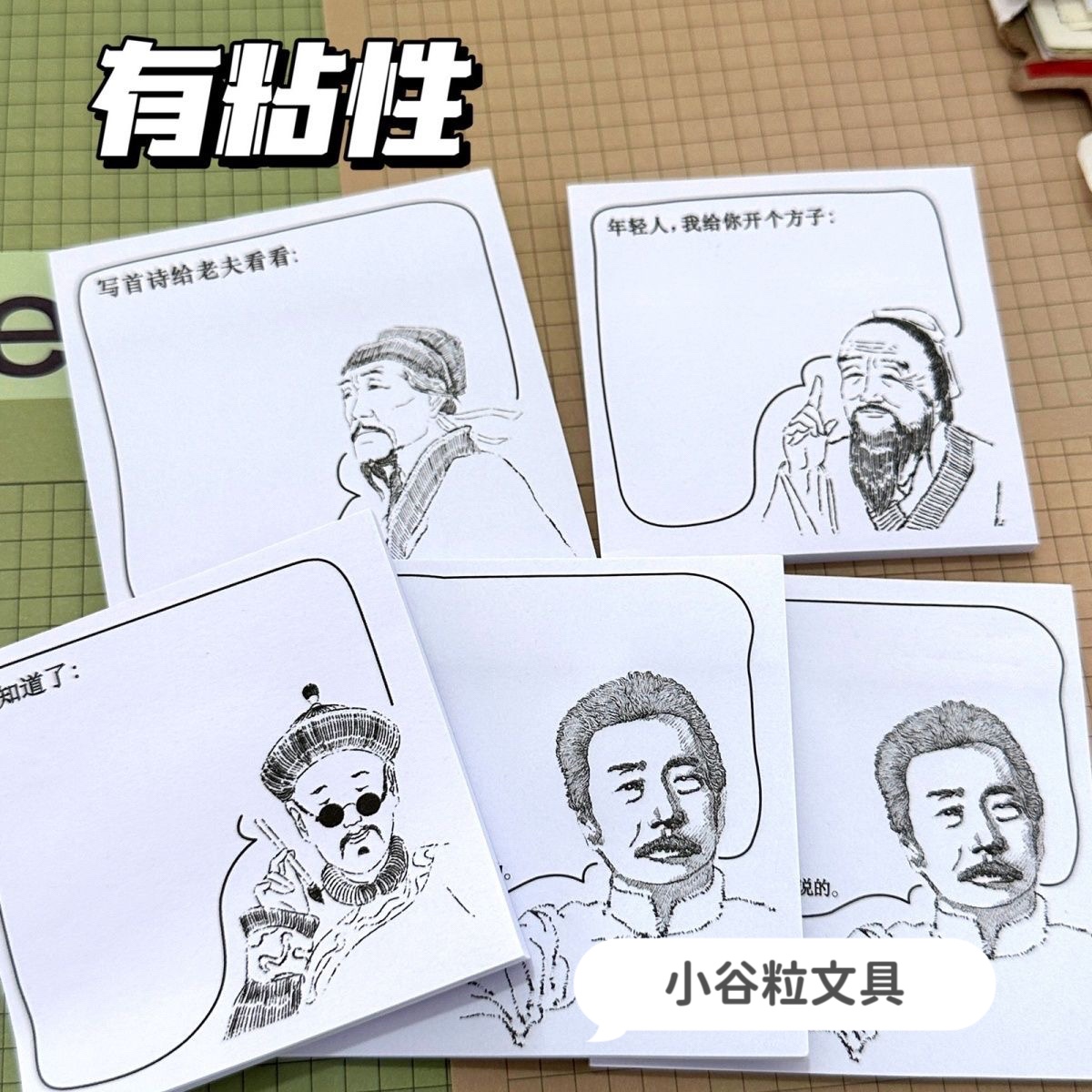 New Creative Small Niche Funny Sticky Notes Ancient Celebrities Lu Xun Yongzheng Bian Que Du Fu Sticky Note Paper quantity