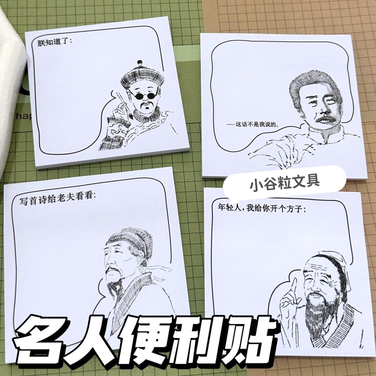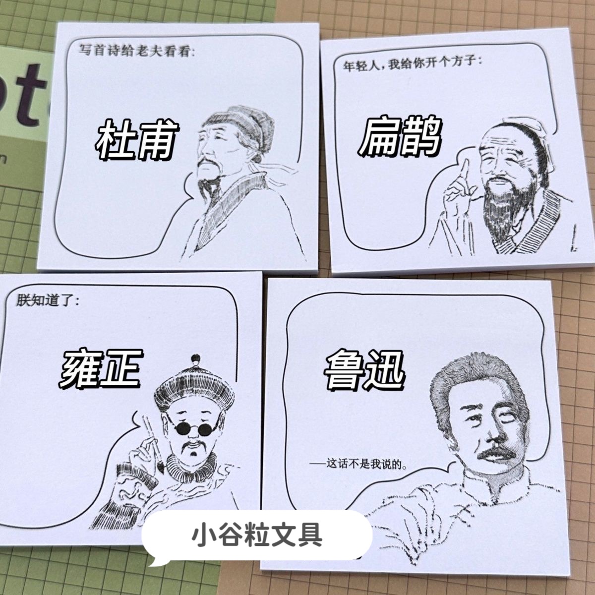 New Creative Small Niche Funny Sticky Notes Ancient Celebrities Lu Xun Yongzheng Bian Que Du Fu Sticky Note Paper
