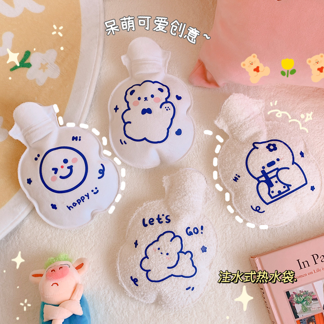 New Ins Cute Plush Hot Water Bag Portable Warm Belly Sticker Water Injection Hand Warmer Foot Warmer Uterus Warmer