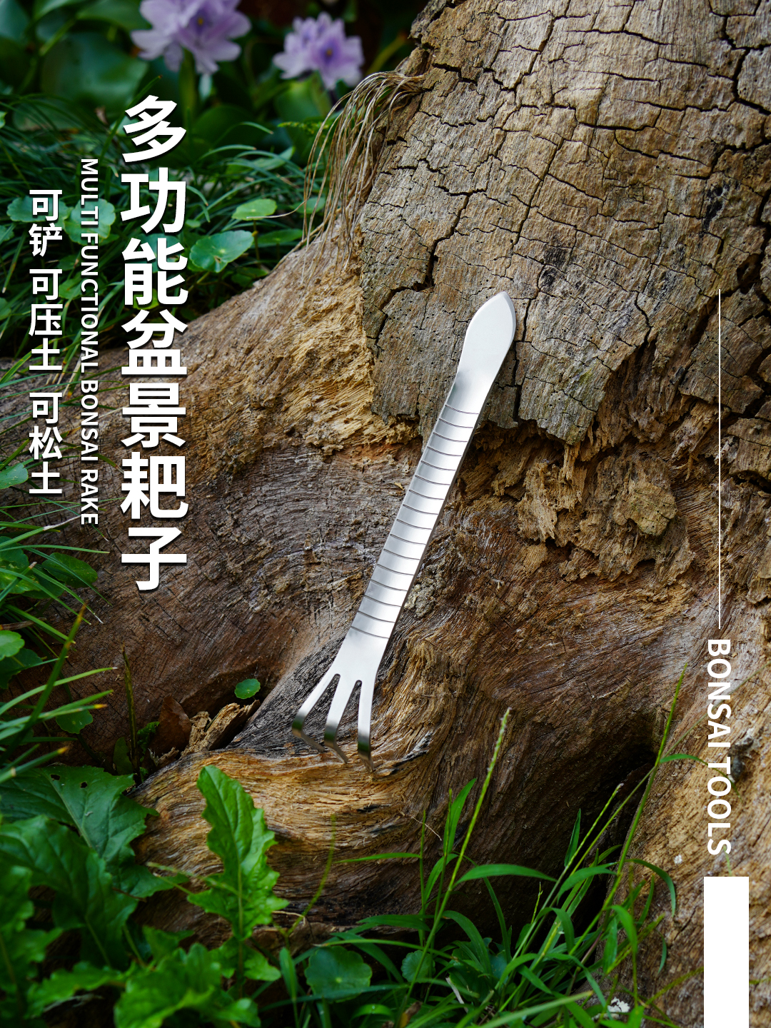New Thickened Bonsai Rake Gardening Rake Handheld Bonsai Pruning Planting Two-in-One Rake Soil Loosening Pressing Tool quantity