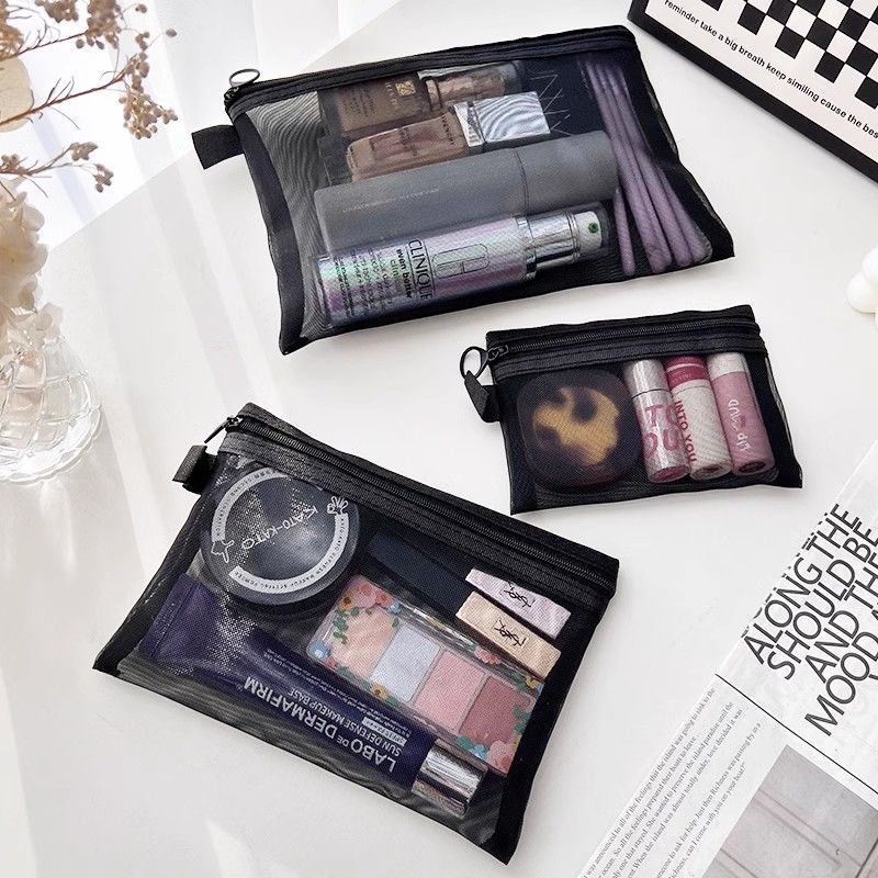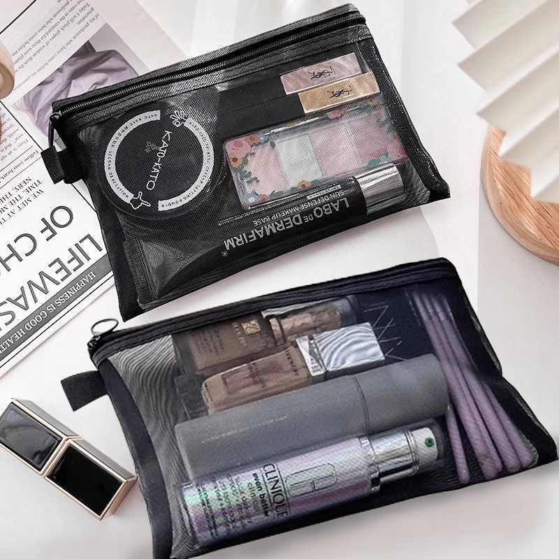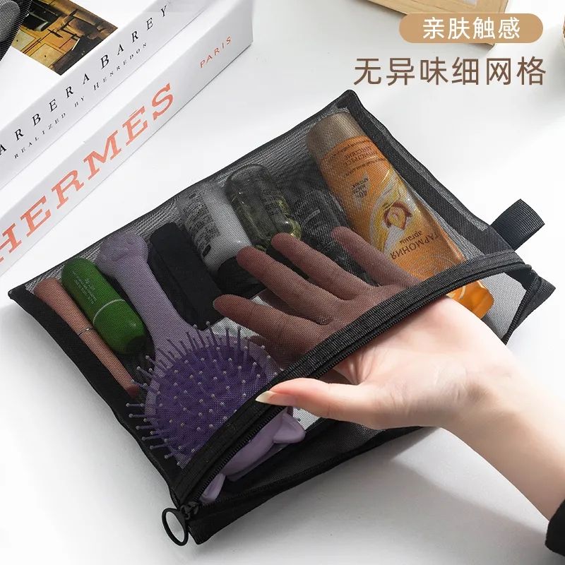 New Transparent Mesh Makeup Bag Large Capacity Niche Mesh Wash Bag Portable Cosmetic Storage Bag