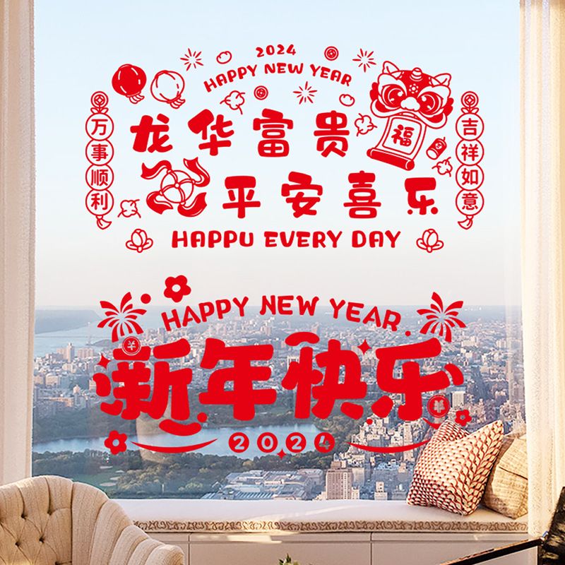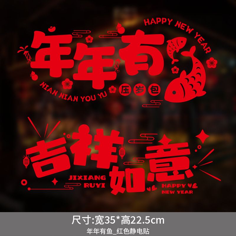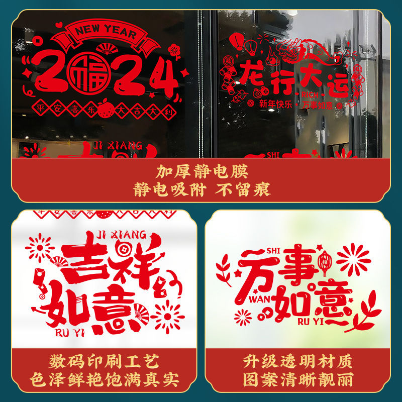New Year Static Stickers Fu Character Window Flowers Glass Door Stickers Paper Cutting for New Year Spring Festival Scene Decoration