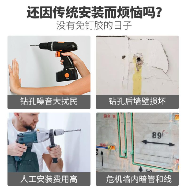 No-Drill Adhesive, Strong Adhesive for Home Use, Anti-Mold Waterproof Glue