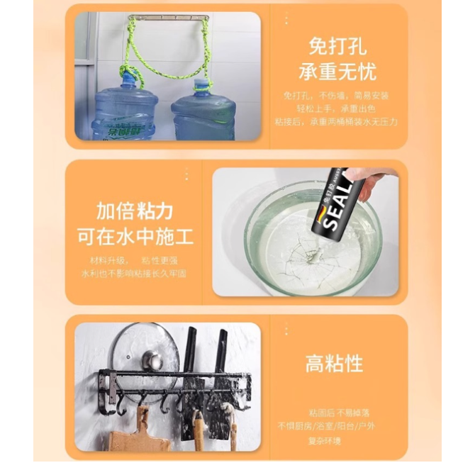 No-Drill Glue Strong Universal High Viscosity Kitchen and Bathroom Storage Rack Mirror Hook Waterproof Household Adhesive Wall Tool