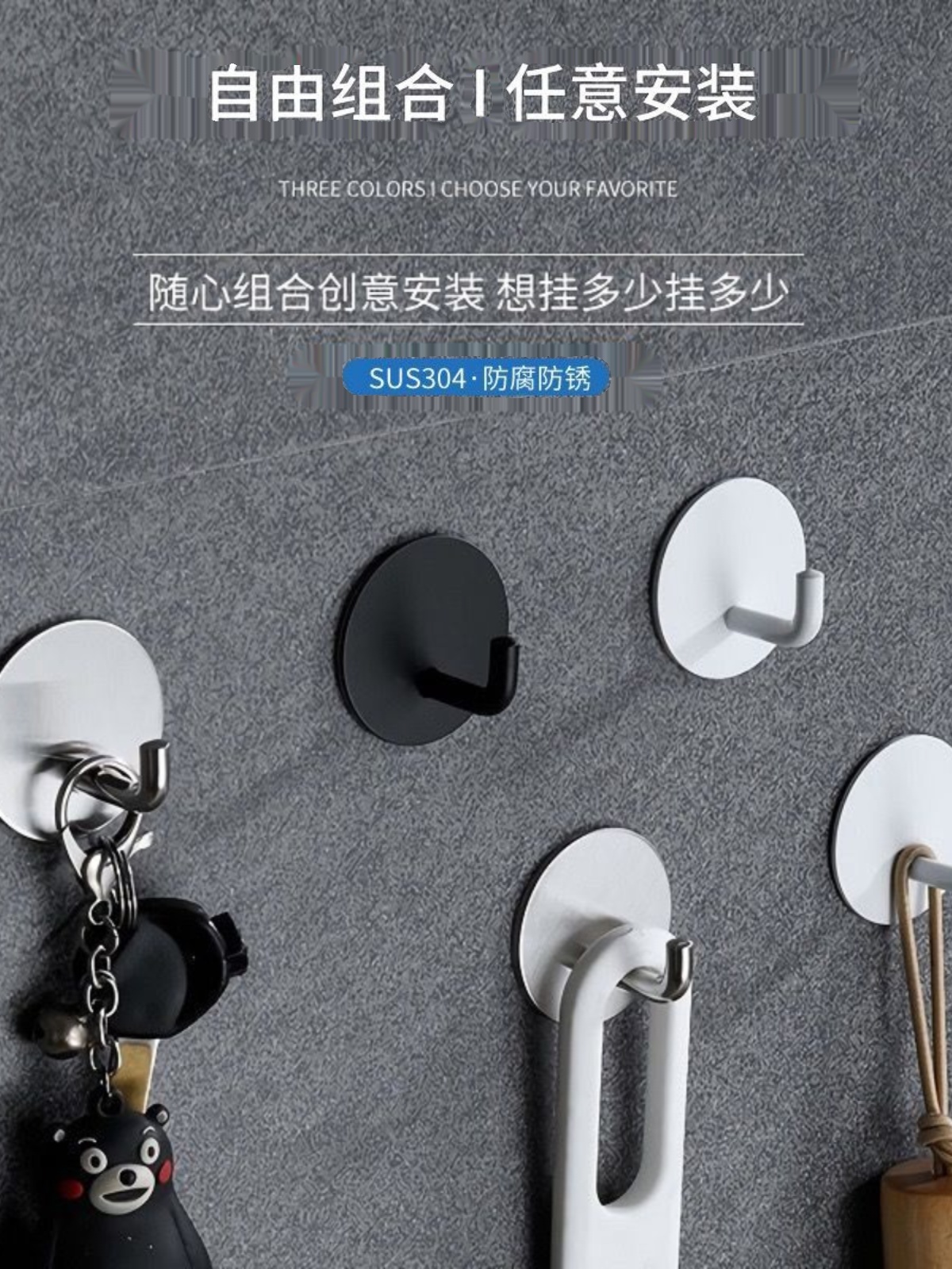 No-Drill Hook Strong Adhesive Wall Hook Bathroom Clothes Hat Wall Hanger Toilet Bathroom Door Hook quantity