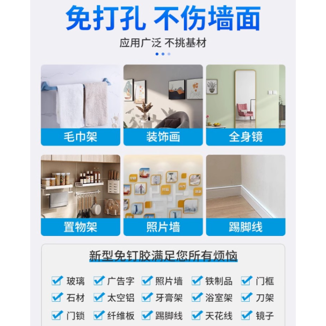 No-Drill Strong Adhesive for Wall and Tile, Waterproof Kitchen Glue for Metal Shelves, No Punching Required quantity