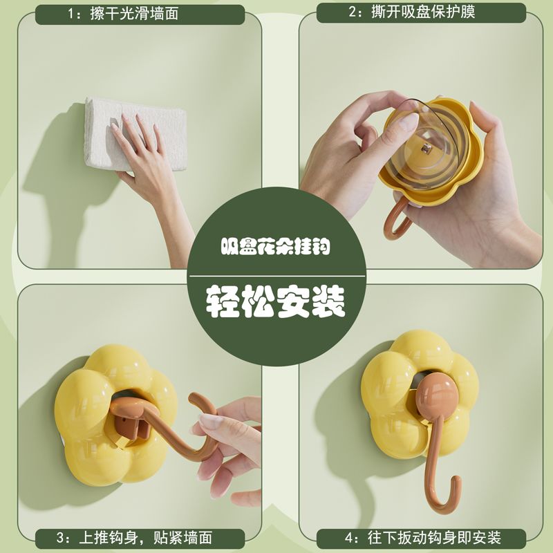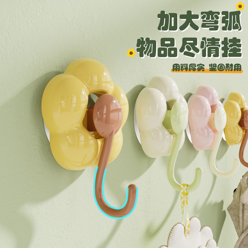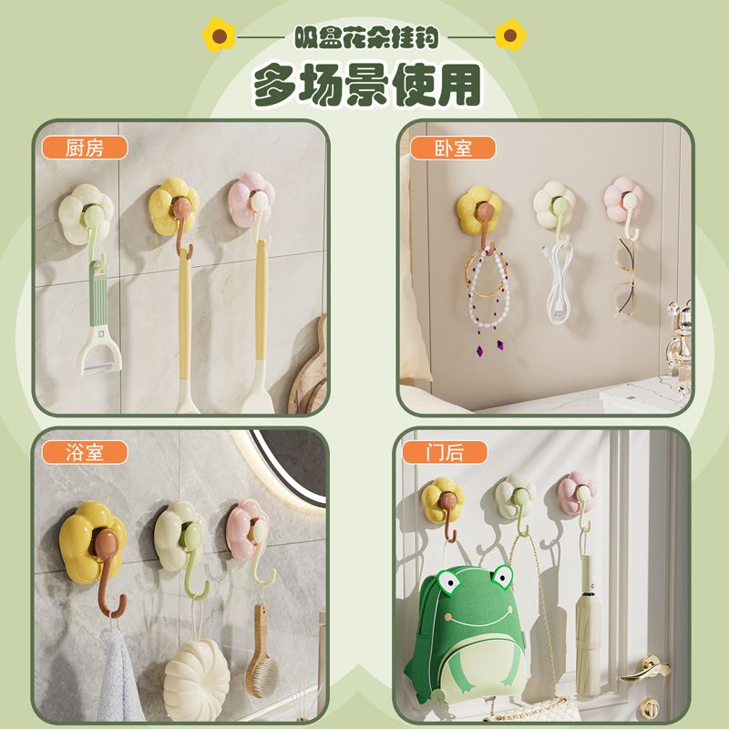 No-Drill Vacuum No Trace Adhesive Strong Flower Suction Cup Hook for Bedroom Dormitory Bathroom Towel Clothes Adhesive Hook