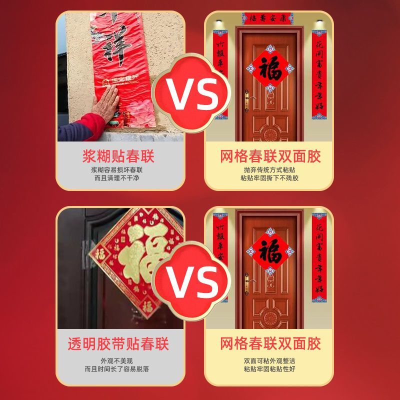 No-Trace Adhesive General Wall Spring Festival Couplets Tape Mesh Double-Sided Adhesive for Home Wedding