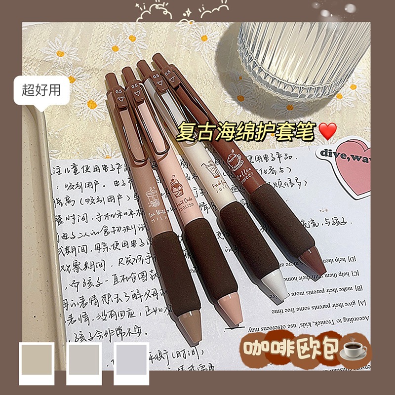 Non-Callus Writing Pen High-Value Black Special Quick-Drying ST Head Water Pen Coffee Soft European Bread
