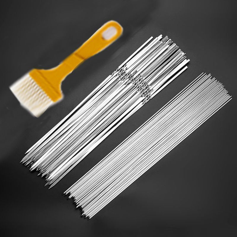 [Stainless Steel] Flat Skewers 50 Pieces with BBQ Brush Stainless Steel Material