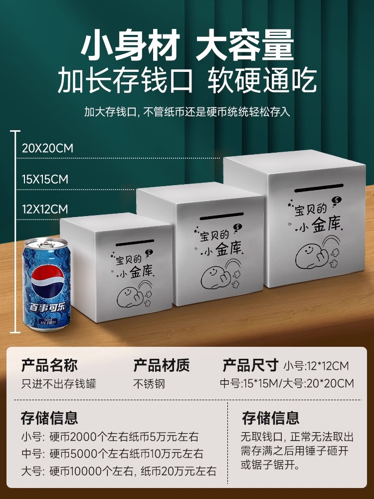 Piggy Bank for Kids, Large Stainless Steel Money Box for Saving quantity