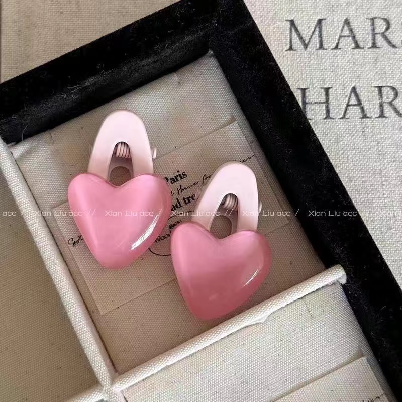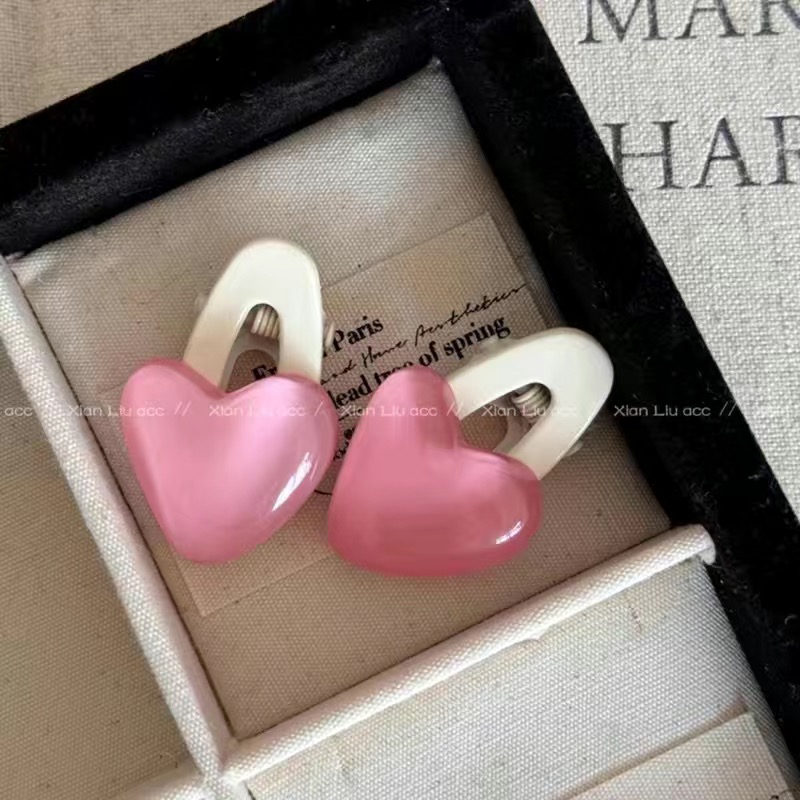 Pink Semi-transparent Heart Hair Clip for Girls Side Hairpin 2024 New Style Hair Accessory