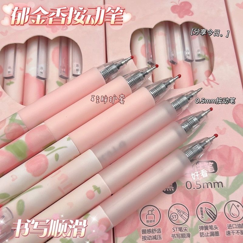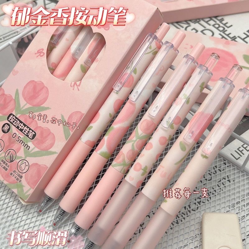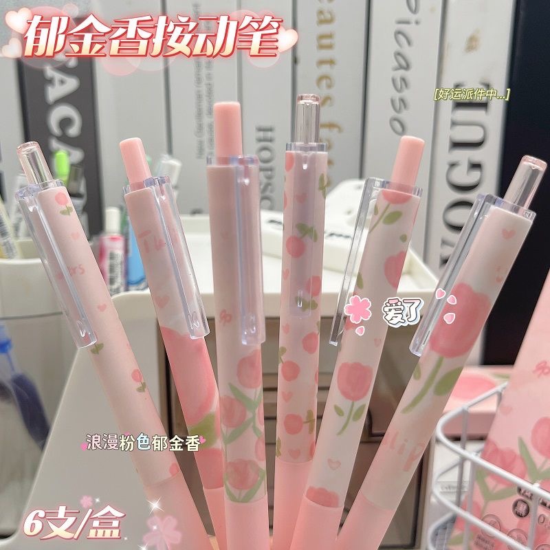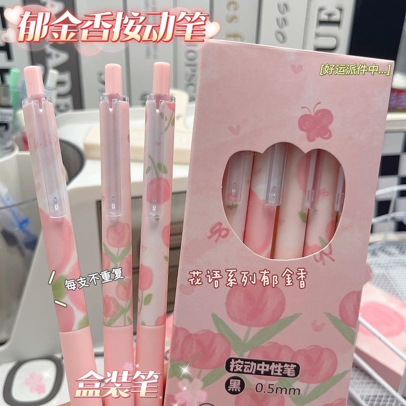 Pink Tulip High-Value Ins Style Push Pen 0.5mm Quick-Drying Exam Pen Girl Student Gel Pen Black Pen quantity