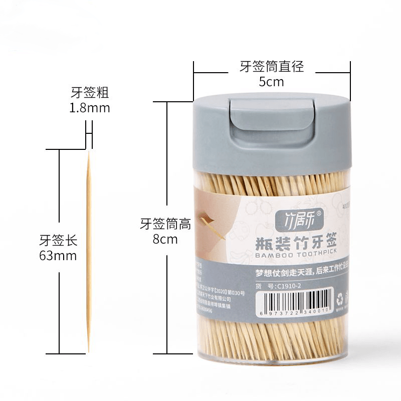 1 barrel Toothpicks with tube - Push top - Double pointed