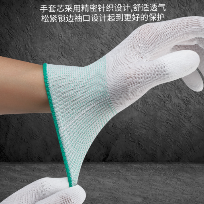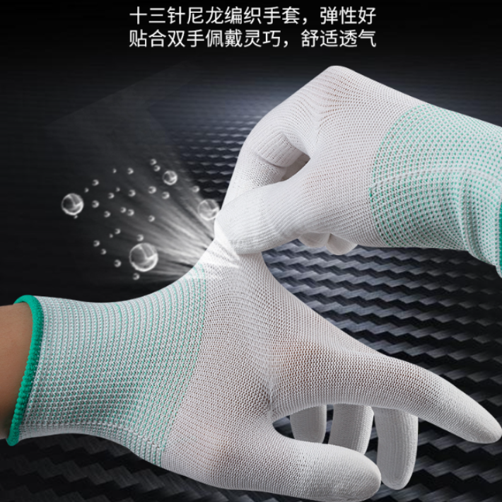 PU Coated Nylon Dust-Free Anti-Static Gloves, Labor Protection, Non-Slip, Breathable, Durable Work Gloves