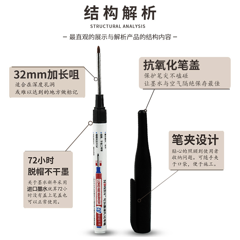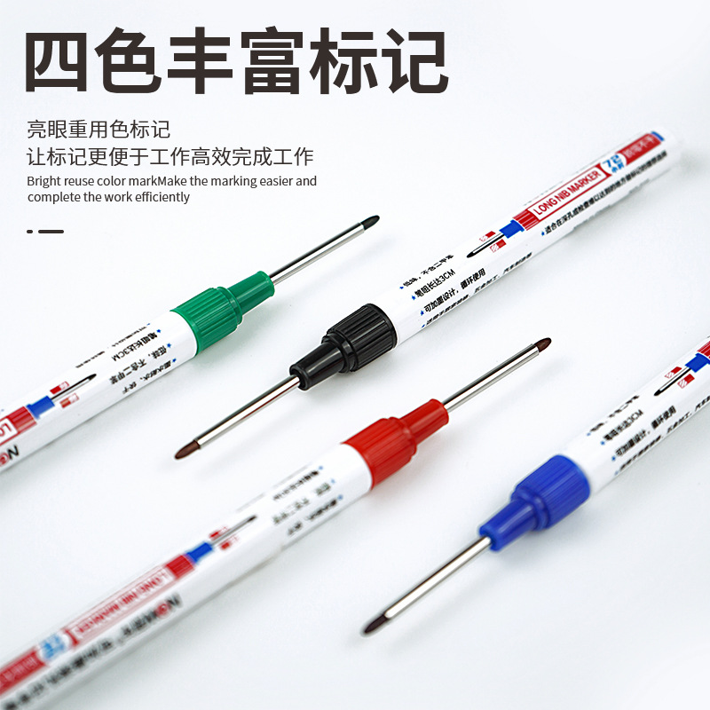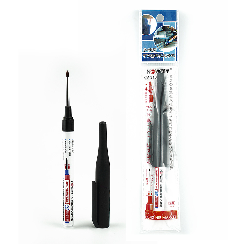 Refillable Long-Head Marker Pen, Deep Hole Marking Pen for Construction, Waterproof and Non-Fading quantity