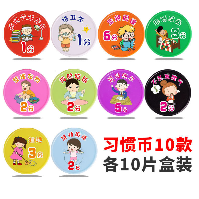 Reward Coins for Good Habits, Points Card for Elementary School Students