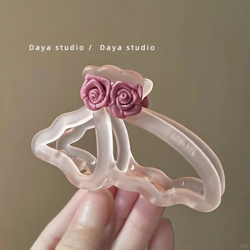 Rose and Butterfly French Retro Acrylic Hollow Flower Claw Clip, Niche Quality Shark Clip
