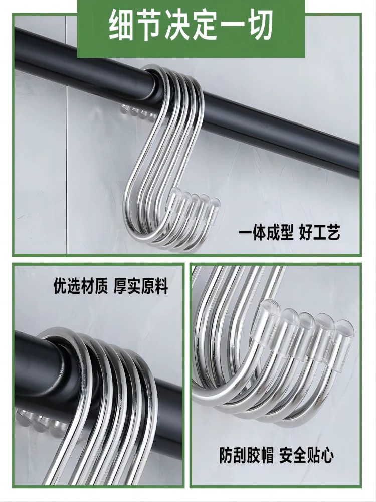 S-Shaped Hook Hanging Sausage Kitchenware No Punching Metal Iron Steel Pipe Hook Strong Wall Storage quantity