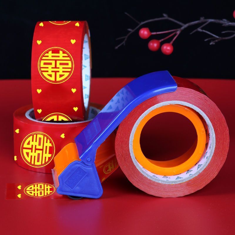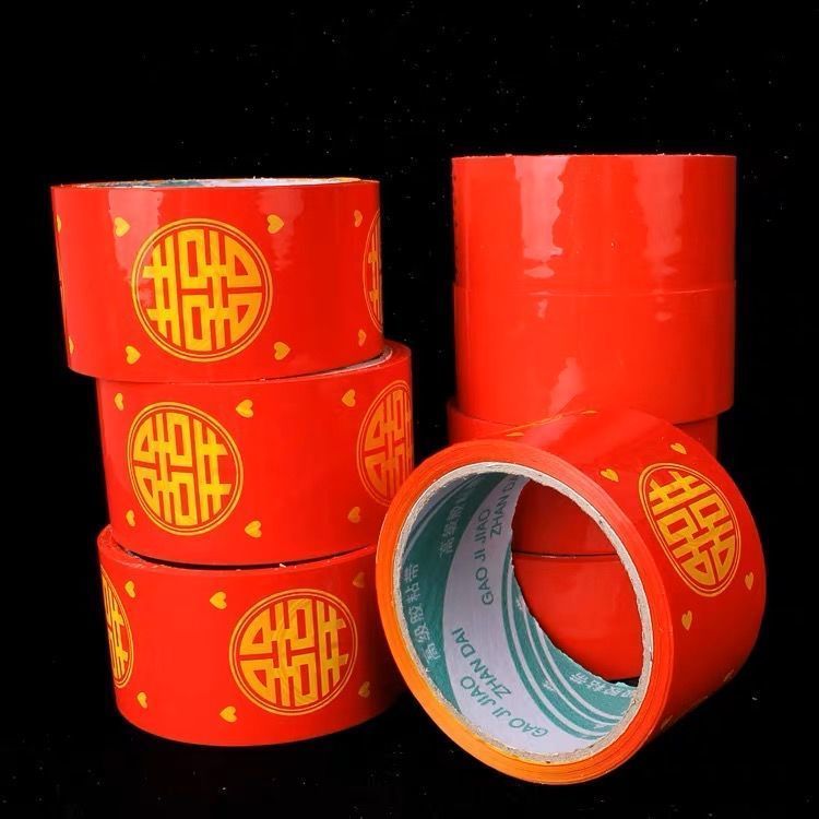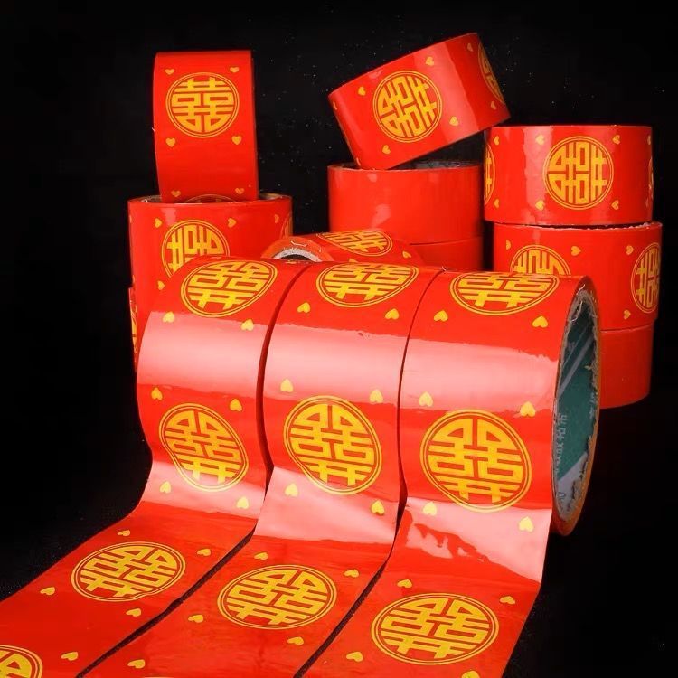 Self-Adhesive Wedding Red Double Happiness Tape Round Joy Tape Internet Celebrity Wide Tape for Covering Manhole Carpet Sealing Box Tape