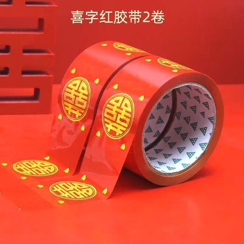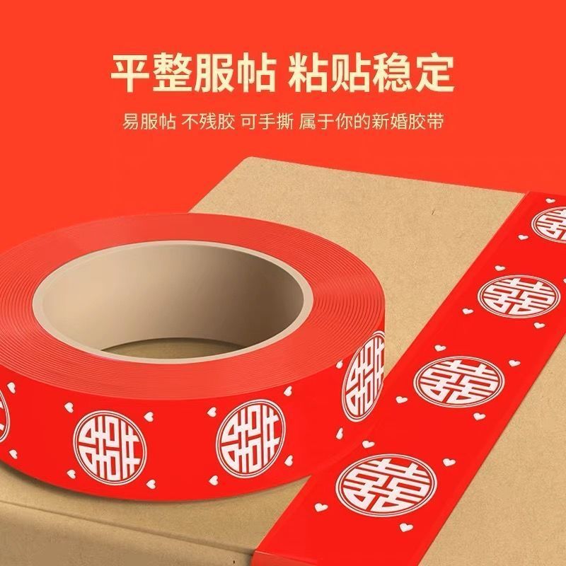 Self-Adhesive Wedding Red Double Happiness Tape Round Joy Tape Internet Celebrity Wide Tape for Covering Manhole Carpet Sealing Box Tape quantity