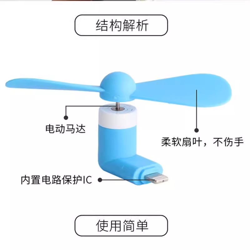 1 Piece Mobile Phone Mini Fan - Apple Android Dual-Use (Light Blue)