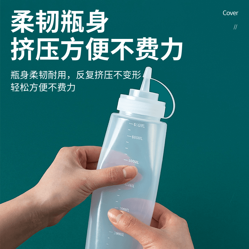 Squeeze Bottle for Ketchup and Salad Dressing, Transparent Plastic, Commercial Use