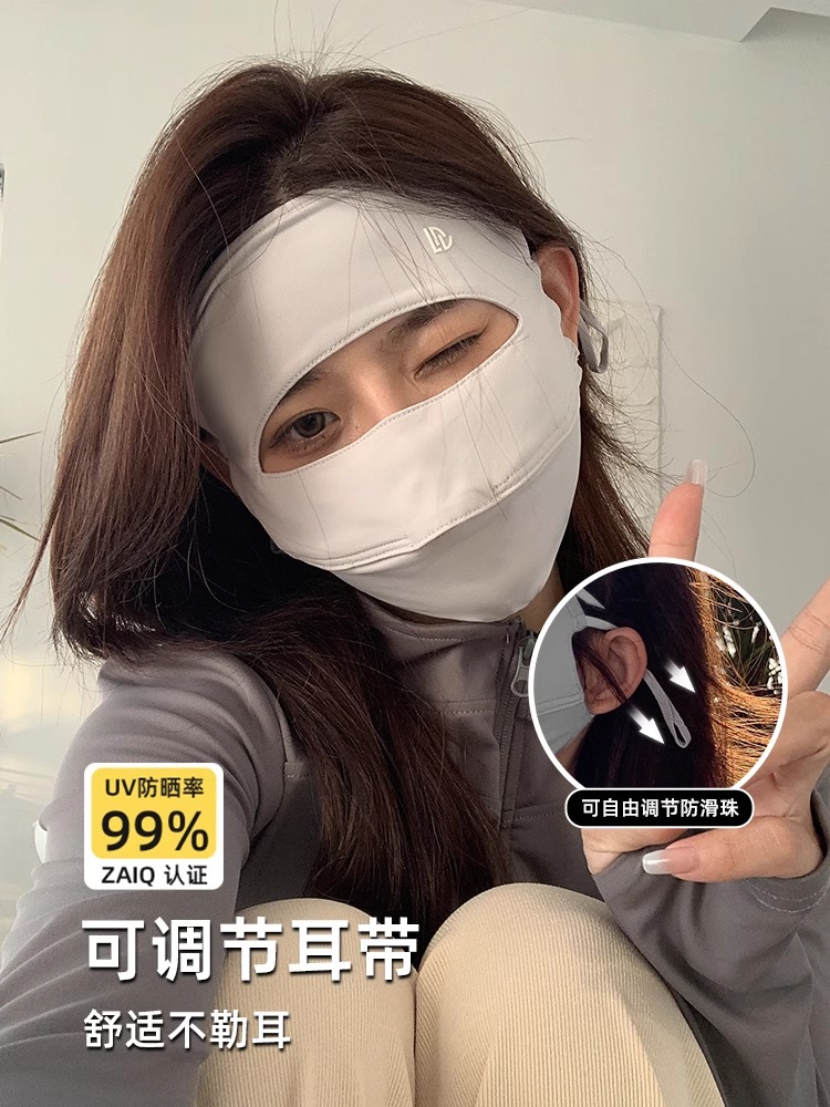Sun Protection Mask for Women Summer Cycling Driving Ice Silk Face Cover Full Face Sunshade Mask