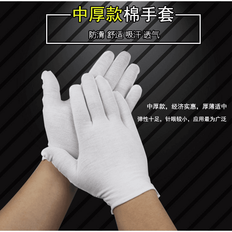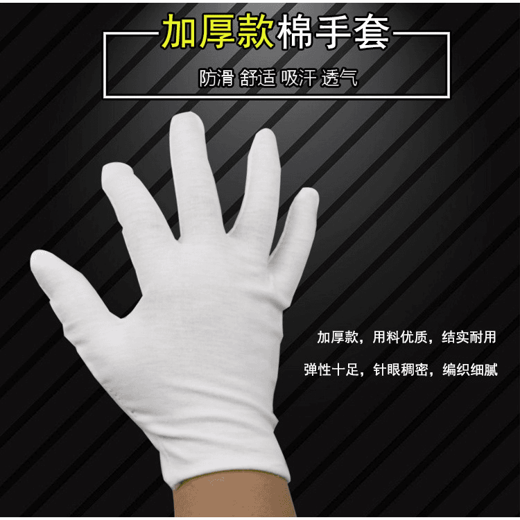 Sweat-proof Etiquette Driving Inspection Pure Cotton Thin Sweat Military Training White Cotton Gloves for Work quantity