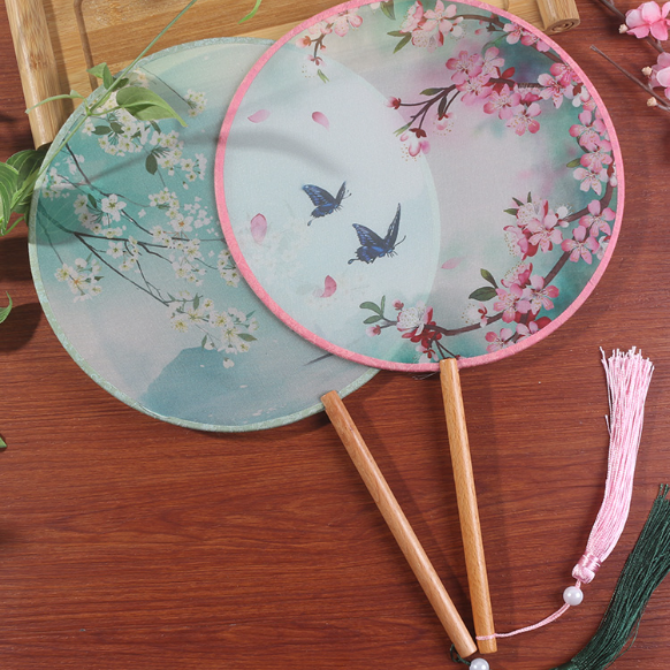 Traditional Hand Fan, Children’s Summer Transparent Long Handle Dance Fan, Ancient Costume Fan