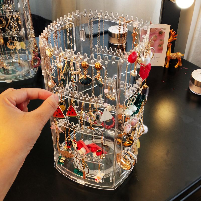 Transparent Multi-Layer Rotating Earring Storage Box Ear Studs Necklaces Hair Ties Hair Clips Jewelry Organizer