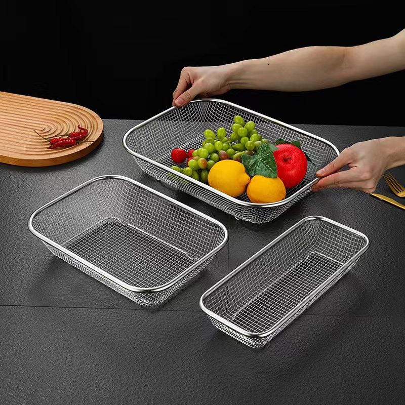 Vegetable Washing Basket Oil Filter Basket Multi-Use Draining Basket Stainless Steel Rectangular Strainer