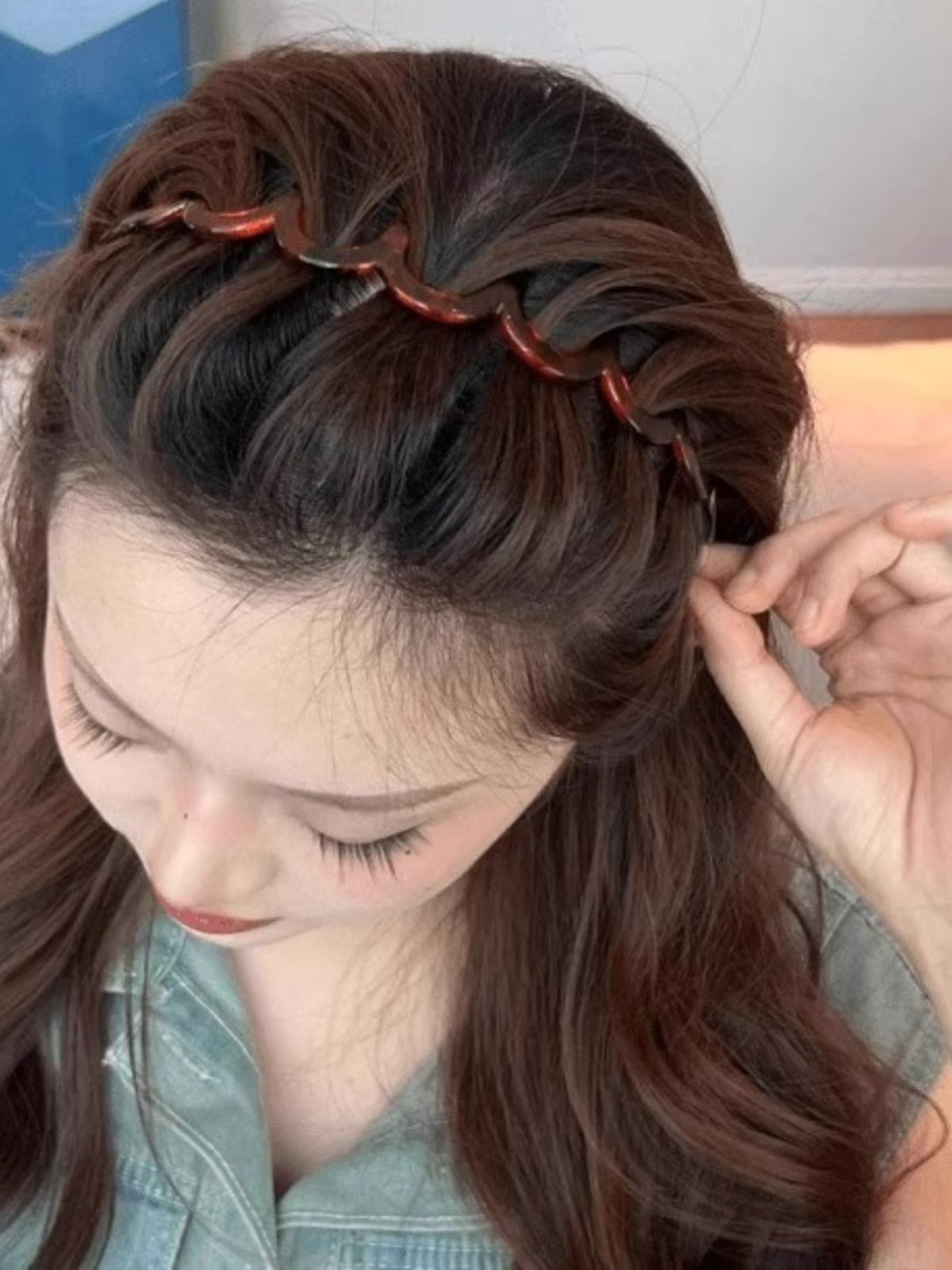 Wavy Headband for Women Sweet New Style Face Wash Non-Slip Textured Tooth Comb Design Hair Clip