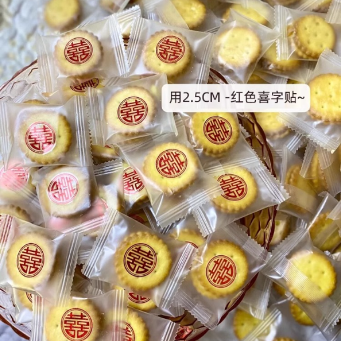Wedding Gift Small Joy Character Internet Celebrity Non-Dry Adhesive Envelope Sealing Stickers Wedding Celebration Candy Box Egg Stickers Wedding Room Decoration