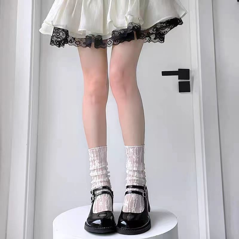 White Lace Knee-High Socks for Women, Summer Mesh Thin Japanese JK Floral Mary Jane Socks quantity