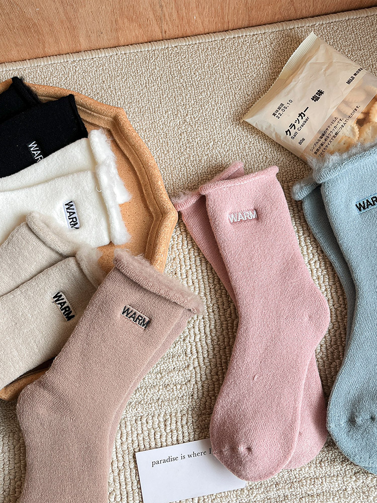 Winter Thick Socks Women's Long Plush Snow Socks Mid-Calf Autumn Winter Warm Letter Embroidery quantity