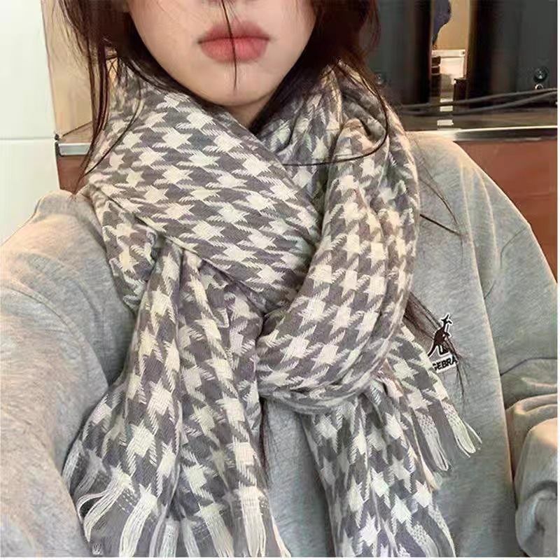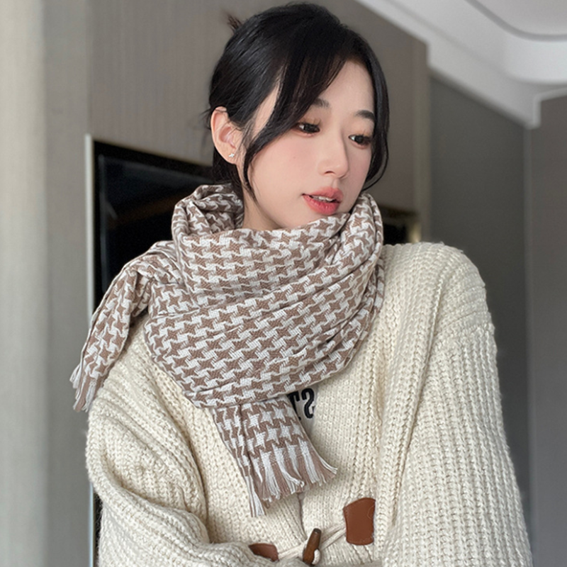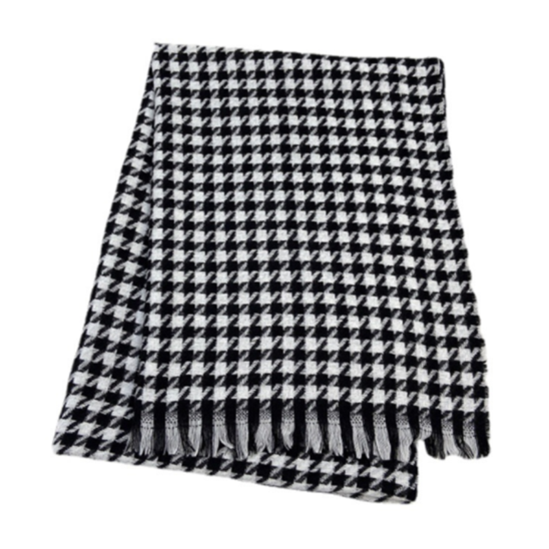 Winter Warm Plaid Scarf for Women 2024 New Couple Versatile Color-Block Knitted Student Houndstooth Neck Scarf