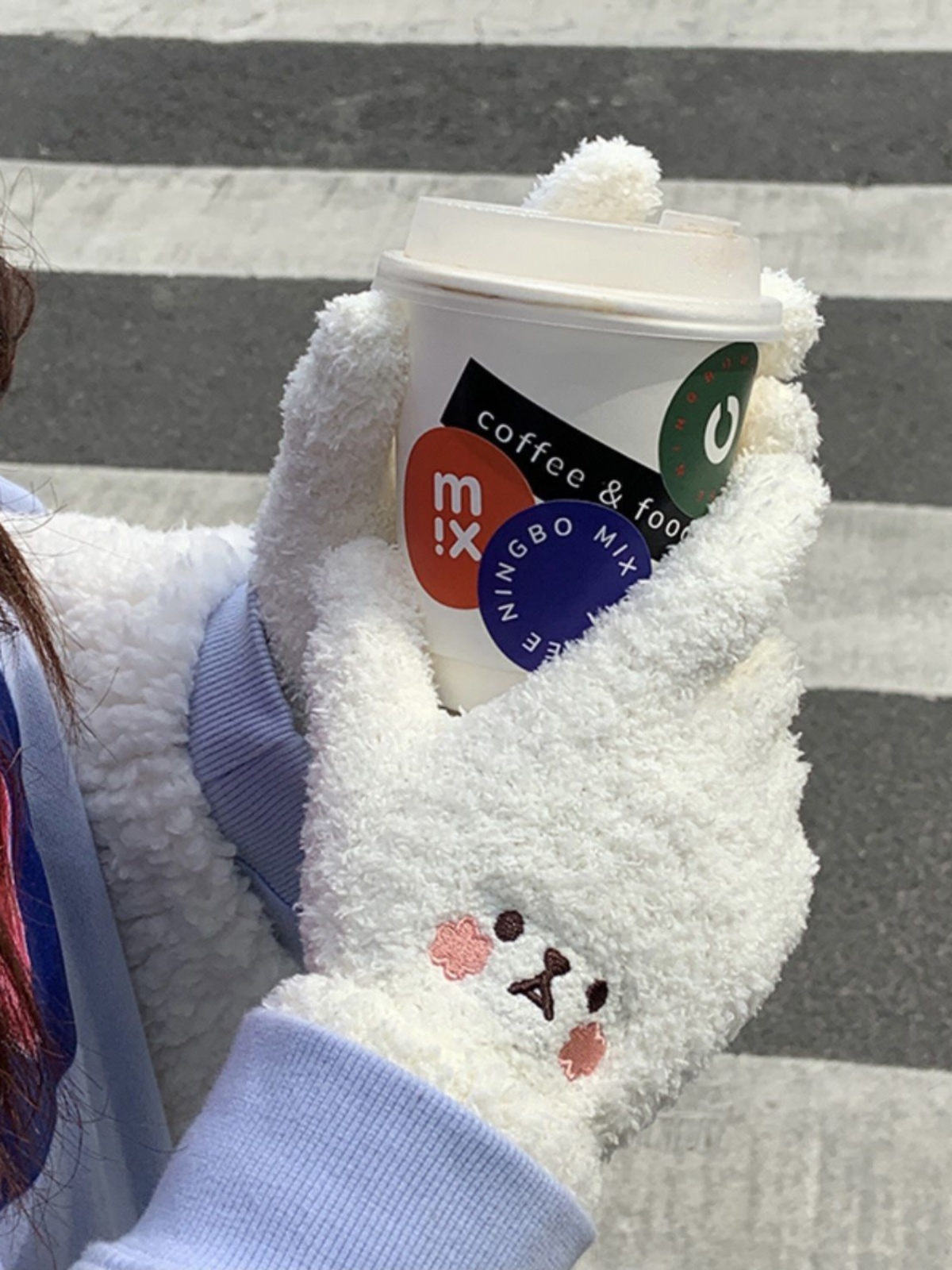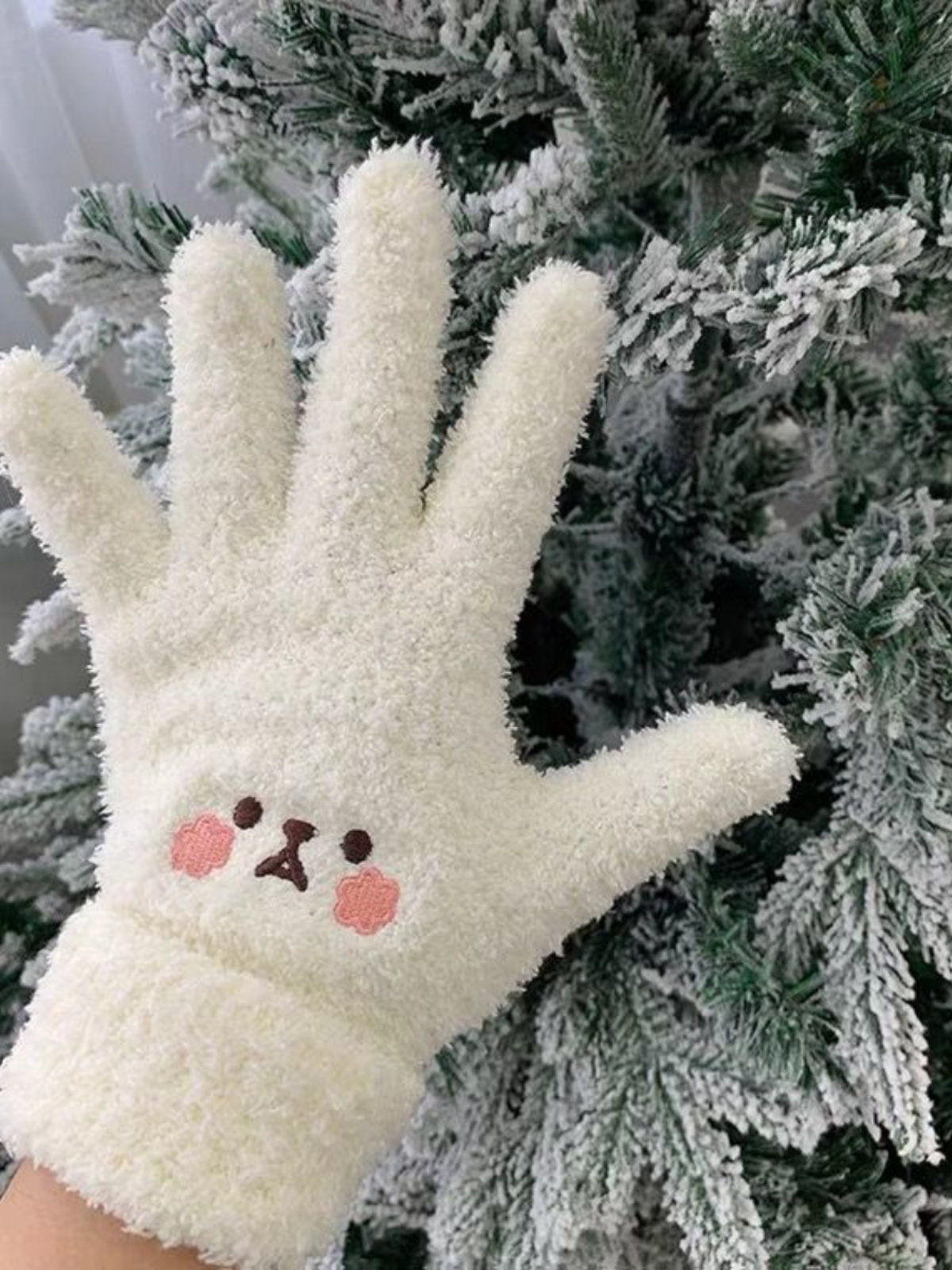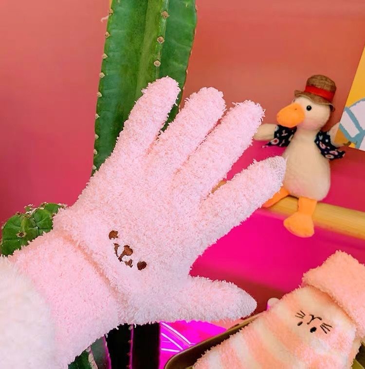 Women's Gloves Cute Bear Autumn and Winter Versatile Warm Fleece Knitted Cycling Windproof Cold-Resistant Gloves quantity