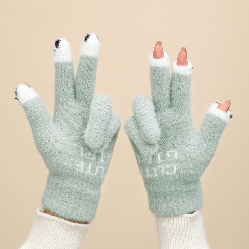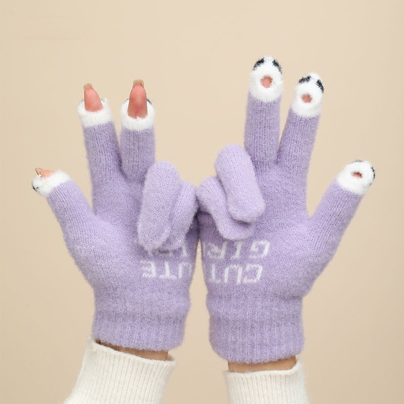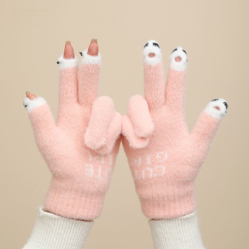 Women's Gloves Winter Cute Touchscreen for Mobile Phones Biking Knitted Wool Fingerless Full Cover Cold Wind Protection quantity