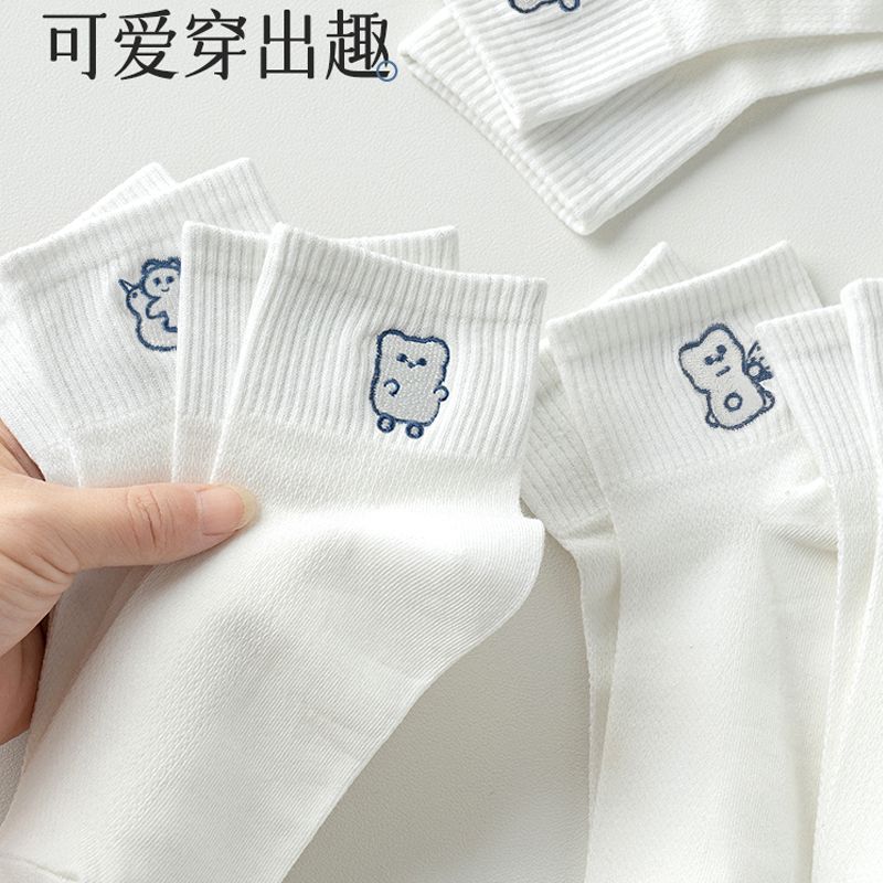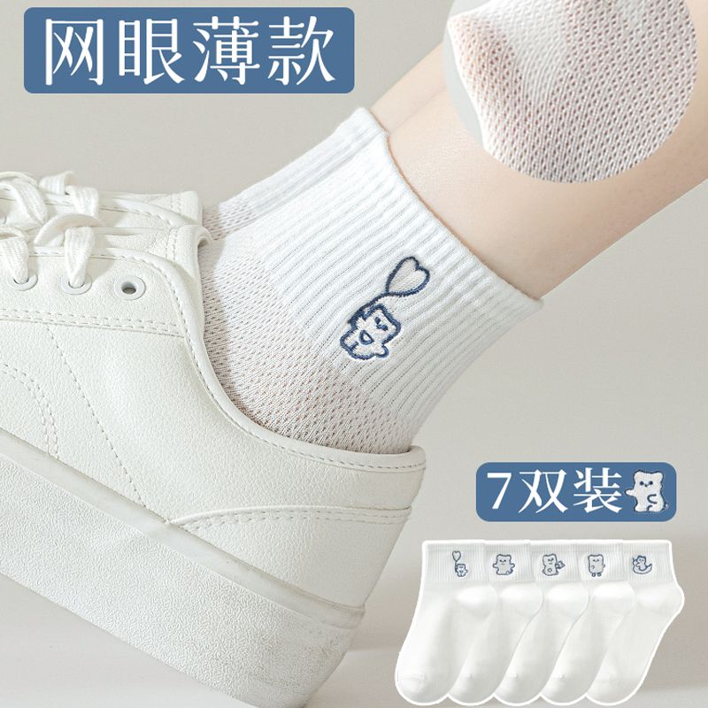 Women's Mid-Calf Socks, Summer Thin Cotton Mesh Breathable, Ins Trendy Versatile Low-Cut Forest Style Cartoon Socks quantity