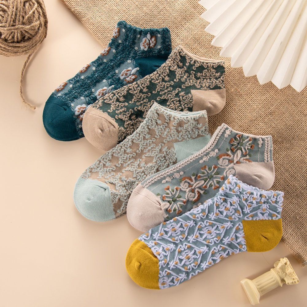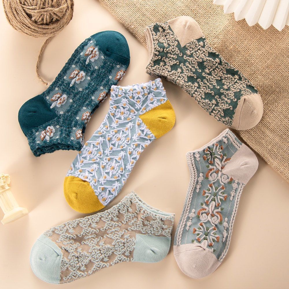 Women's Socks, Spring and Summer Retro Three-Dimensional Short Socks, Trendy Cotton Breathable Boat Socks quantity