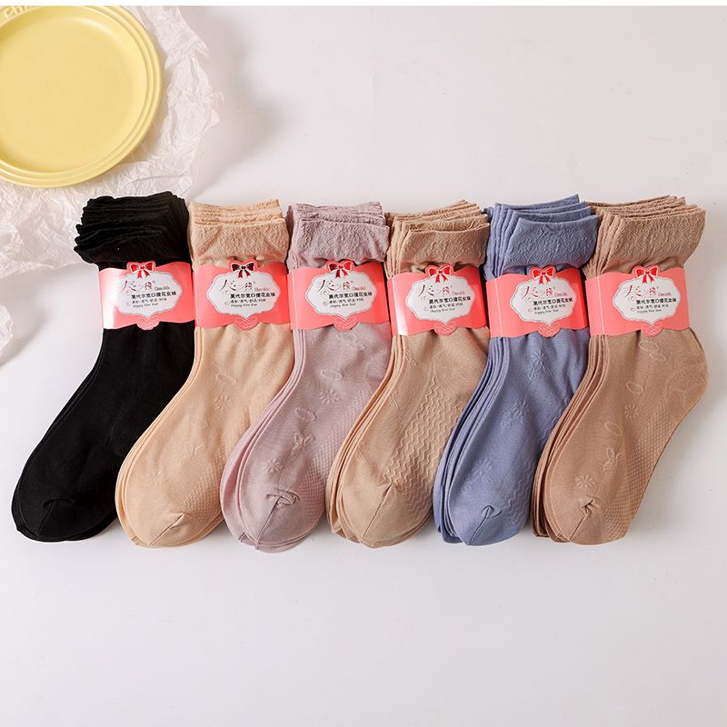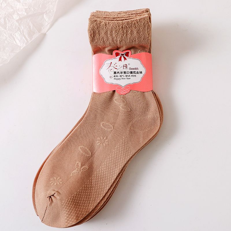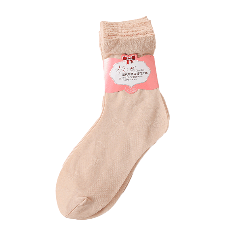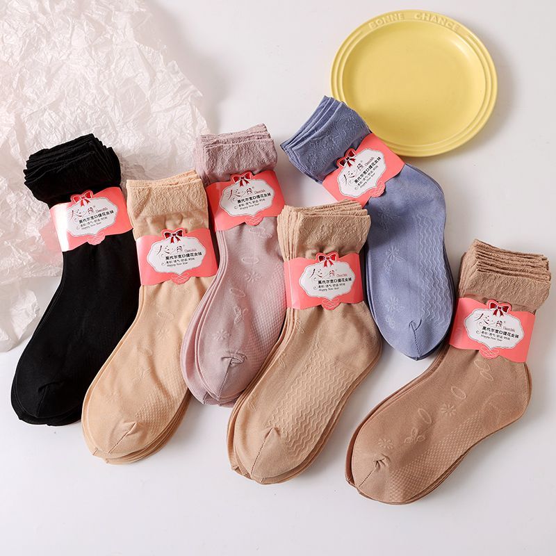 Women's Stockings, New Wide Mouth Jacquard Trendy, Spring/Summer Thin Flesh-Colored Durable Socks, Mid-Calf quantity
