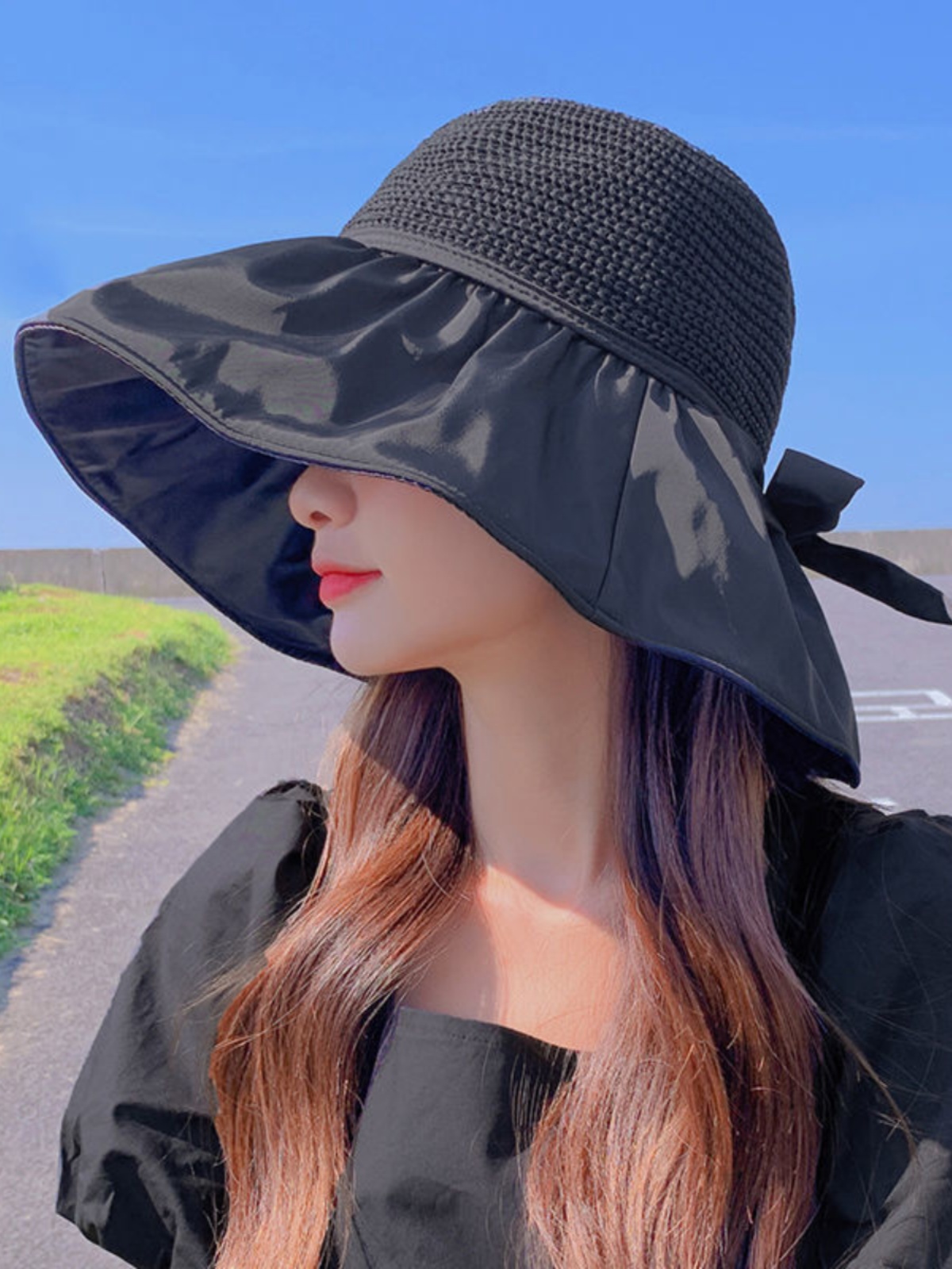 Women's Summer Black UV Sun Hat with Bow, Wide Brim, Sun Protection, Sports Fishing Hat quantity