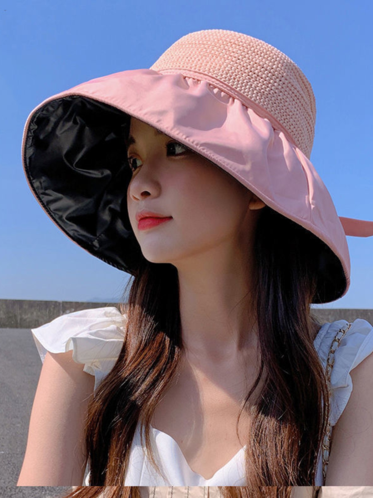 Women’s Summer Black UV Sun Hat with Bow, Wide Brim, Sun Protection, Sports Fishing Hat