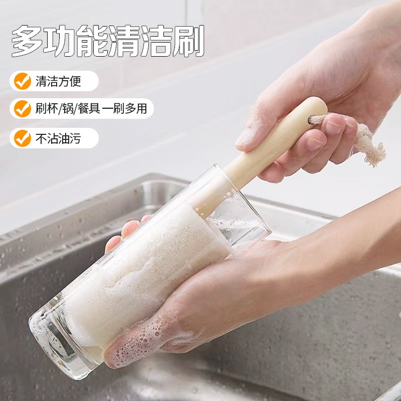 Wooden Handle Loofah Cup Brush, Hanging Long Handle Cup Brush, Non-Oily, Vintage Dish Brush