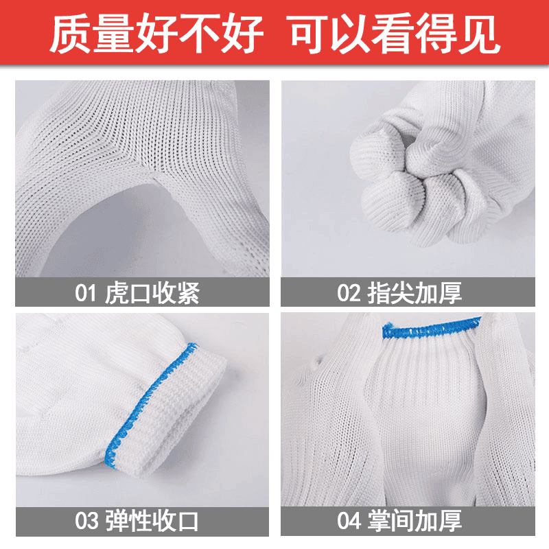 10 Pairs Labor Protection Gloves - White Plus Silk - 33g - 1 Pair (Bagged)