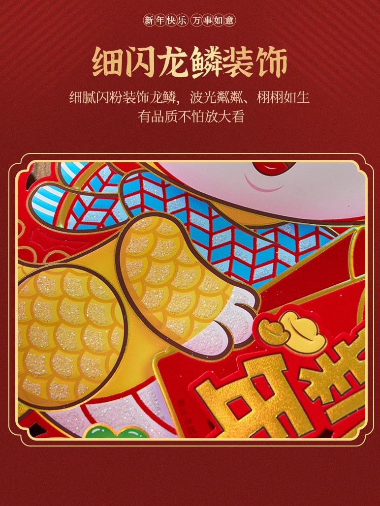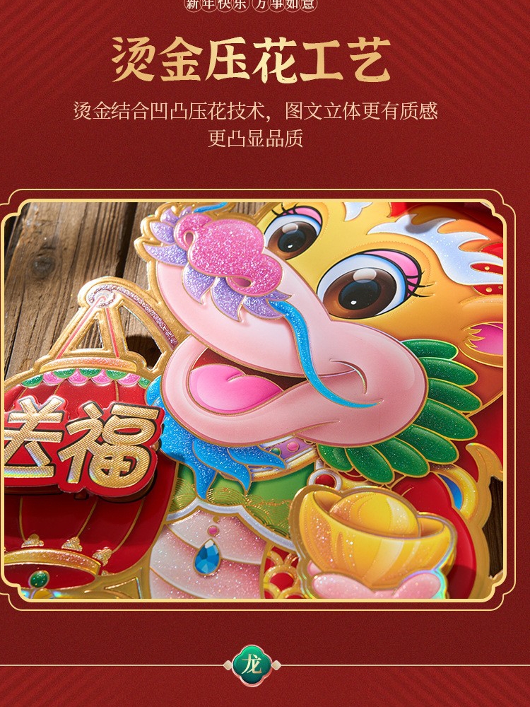 Year of the Dragon Velvet 3D Zodiac New Year Decoration, Gold Foil Couplets for Stalls quantity
