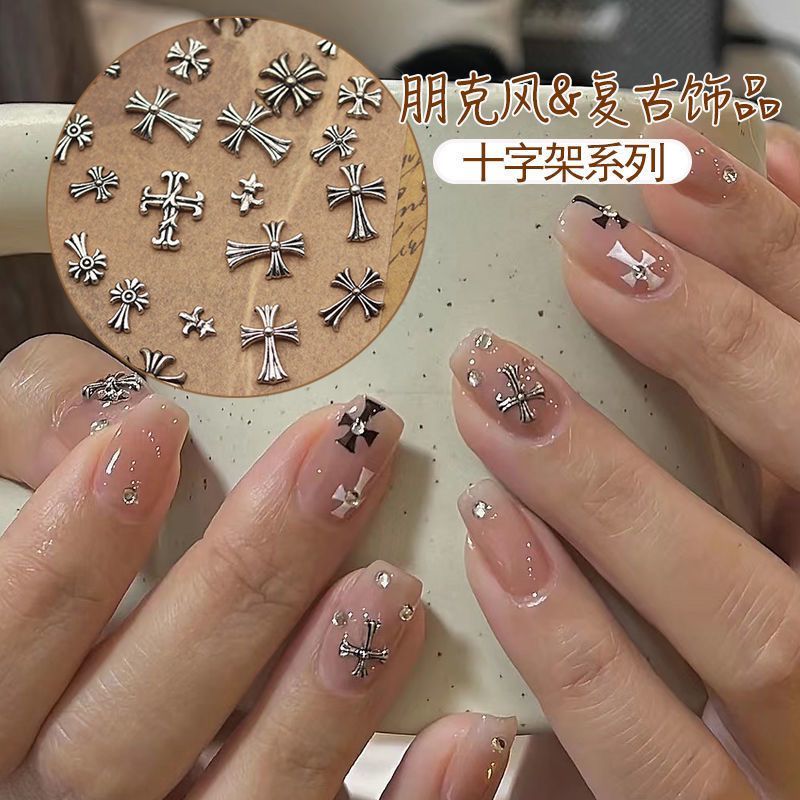 Acessórios de unhas, cruz de metal, estilo punk