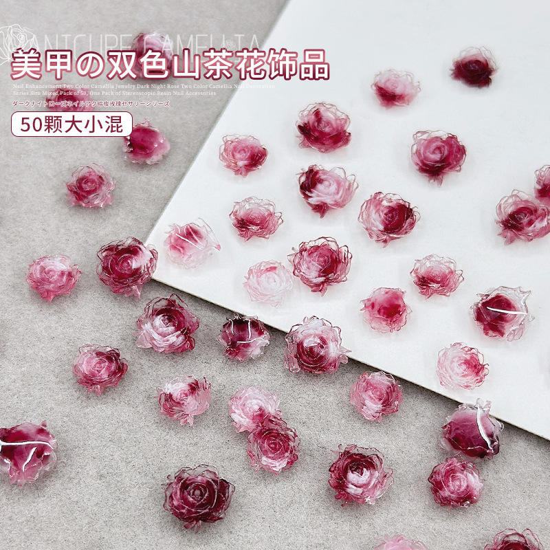 Acessórios de flor de camélia bicolor para unhas, nova coleção, rosa escura vintage