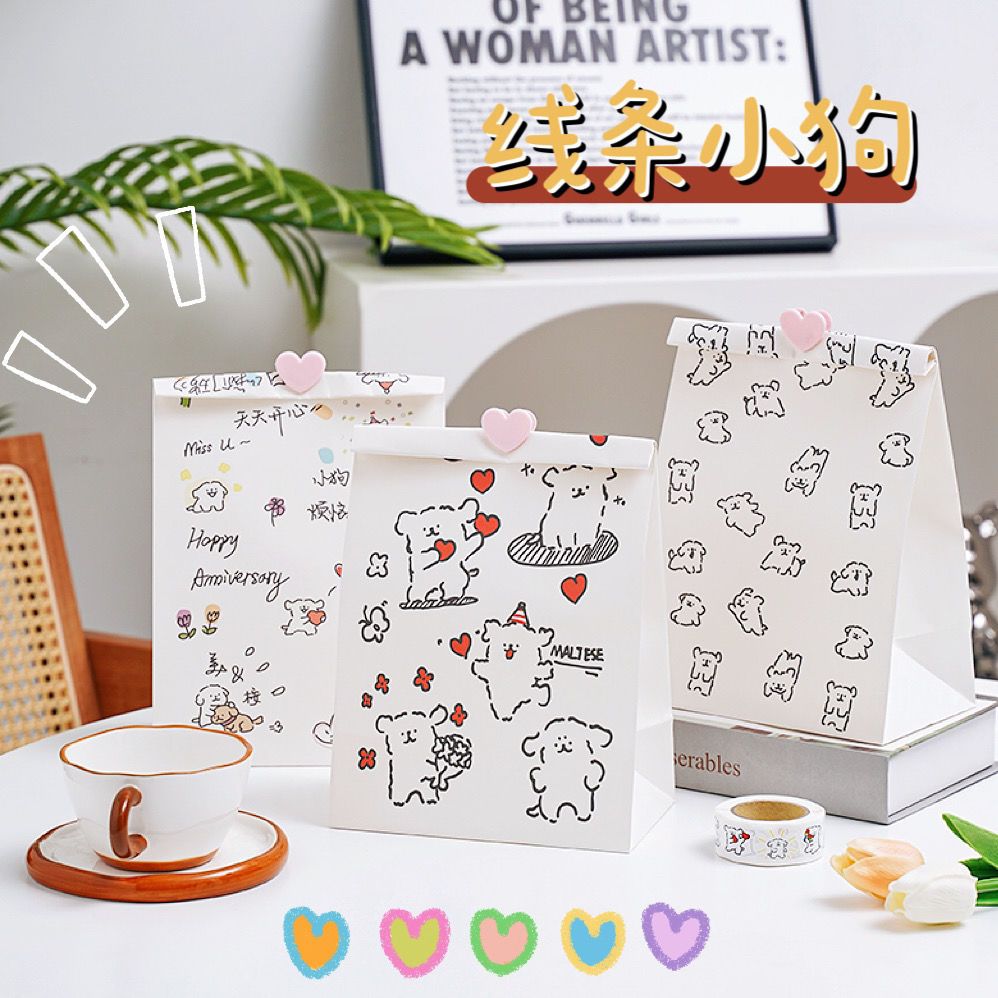 Saco de papel de cachorro fofo estilo Ins, presente de jardim de infância, bolsa de armazenamento de doces para o Dia dos Namorados e Natal
